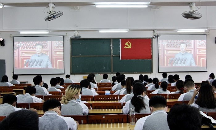 本网讯(信息技术学院 黄欣妍)为提升党性教育水平,增强全体师生的责任心和自豪感。7月1日,信息技术学院于振华楼501室组织学生观看庆祝中国共产党成立100周年大会,信息技术学院党总支冷云峰副书记、全体辅导员以及入党积极分子参与本次大会。