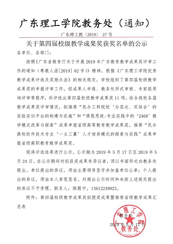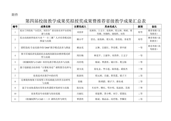 关于第四届校级教学成果奖获奖名单的公示
