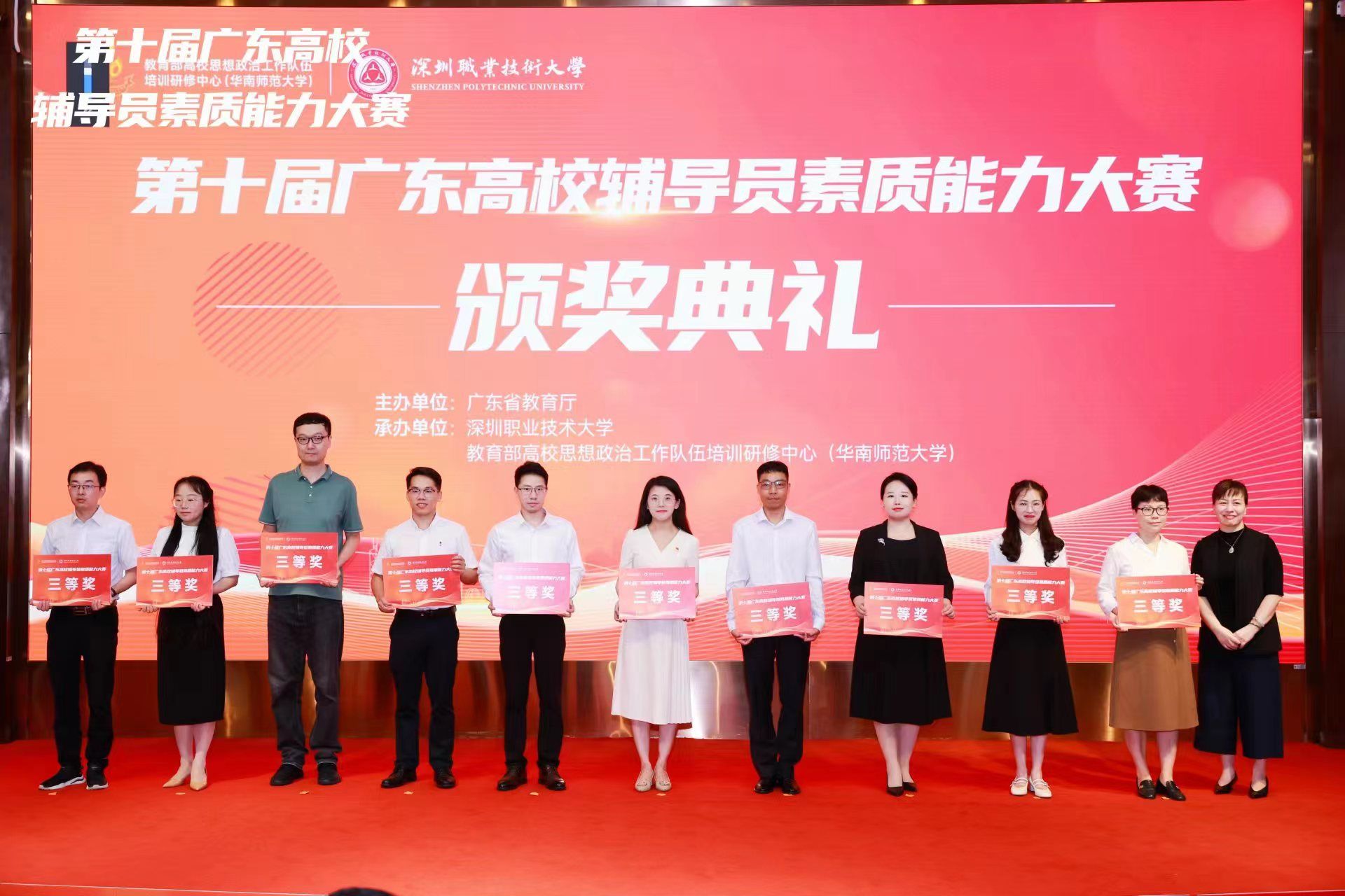 本网讯(学生处)5月29日至31日,由广东省教育厅主办、高校思想政治工作队伍培训研修中心(华南师范大学)和深圳职业技术大学承办的第十届广东高校辅导员素质能力大赛在深圳职业技术大学举行。bat365官网信息技术学院专职辅导员张若玉老师代表学校参加此次大赛,在来自全省136名参赛辅导员中脱颖而出,荣获大赛三等奖。