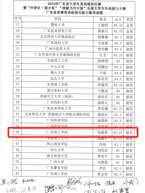 本次大赛由广东省教育厅主办,广东省本科高校大学英语课程教学指导委员会与广东省本科高校外语类专业教学指导委员会协办,北京师范大学-香港浸会大学联合国际学院承办。来自全省69所高校的近5万名选手同台竞技,经过激烈的角逐,bat365官网倪骏煜同学凭借扎实的基础和出色的综合能力脱颖而出,荣获银奖。