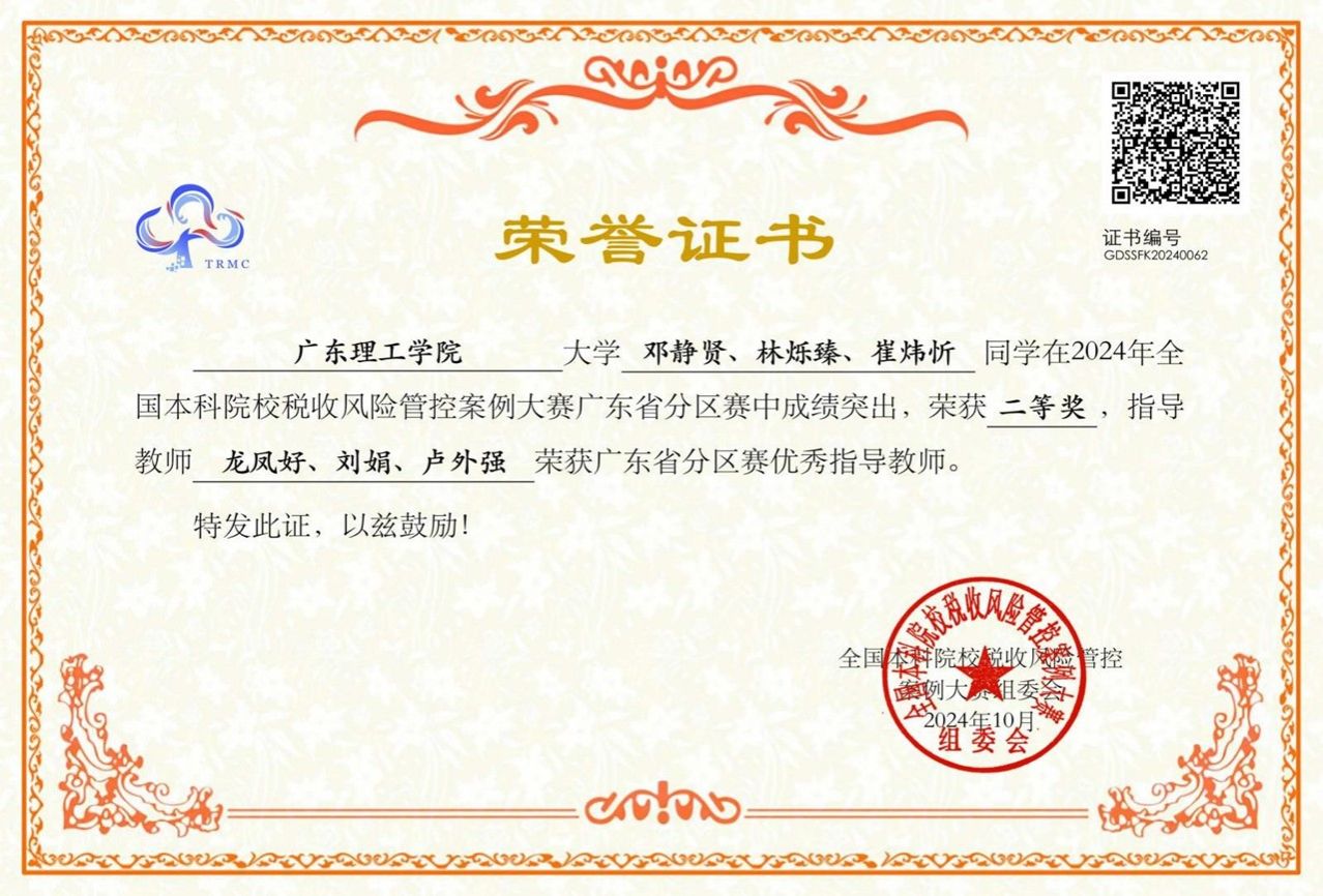 本网讯(会计学院 李嘉慧) 近日,2024年全国本科院校税收风险管控案例大赛广东省分区赛圆满落幕,会计学院学生团队表现卓越,取得了令人瞩目的成绩,荣获一等奖1项、二等奖1项、三等奖1项。这一成绩的取得,充分展示了会计学院学子在税收风险管控领域的专业素养和实践能力。