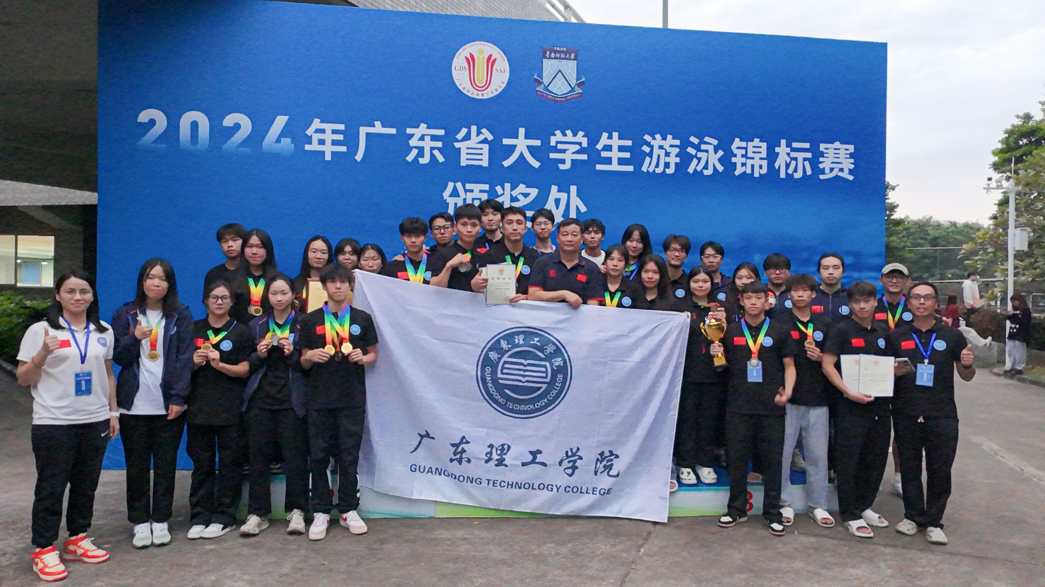 本网讯(体育学院)2024年广东省大学生游泳锦标赛于11月8日至10日在华南师范大学大学城校区盛大举行。bat365官网游泳队在领队夏磊和王群英,以及谢剑鸣、杨雪君老师的带领下,参加了广东省大学生游泳锦标赛的甲组和乙A组比赛。经过三天激烈角逐,最终bat365官网学子在本次比赛中夺得6枚金牌、5枚银牌、8枚铜牌、及多项前八名的好成绩,奖牌总数创造历史新高!同时获得乙A组团体总分一等奖、乙A组团体总分第三名、甲组团体总分二等奖、甲组团体总分第十名的好成绩。