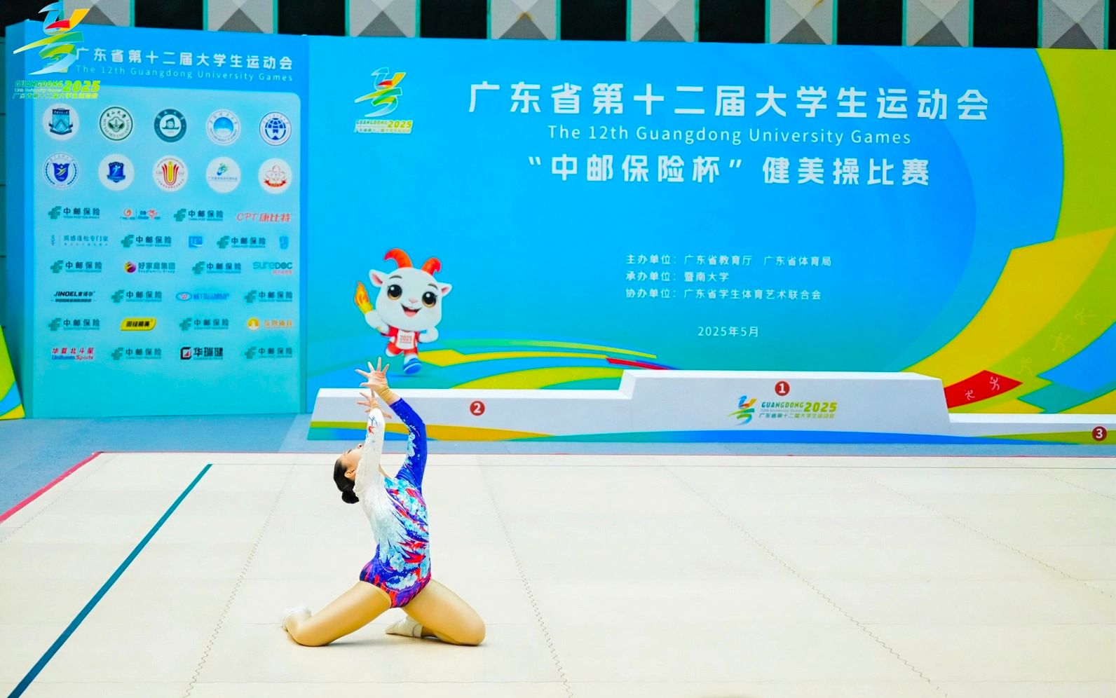 本网讯(体育学院新闻中心)5月8日至11日,广东省第十二届大学生运动会健美操比赛在暨南大学(石牌校区)邵逸夫体育馆隆重举行。本届赛事汇聚了全省42所高校的400名师生同场竞技,设有甲、乙、丙三个参赛组别,其中甲组设有男子单人操、女子单人操、混合双人操、三人操、六至八人有氧舞蹈五个竞技项目。