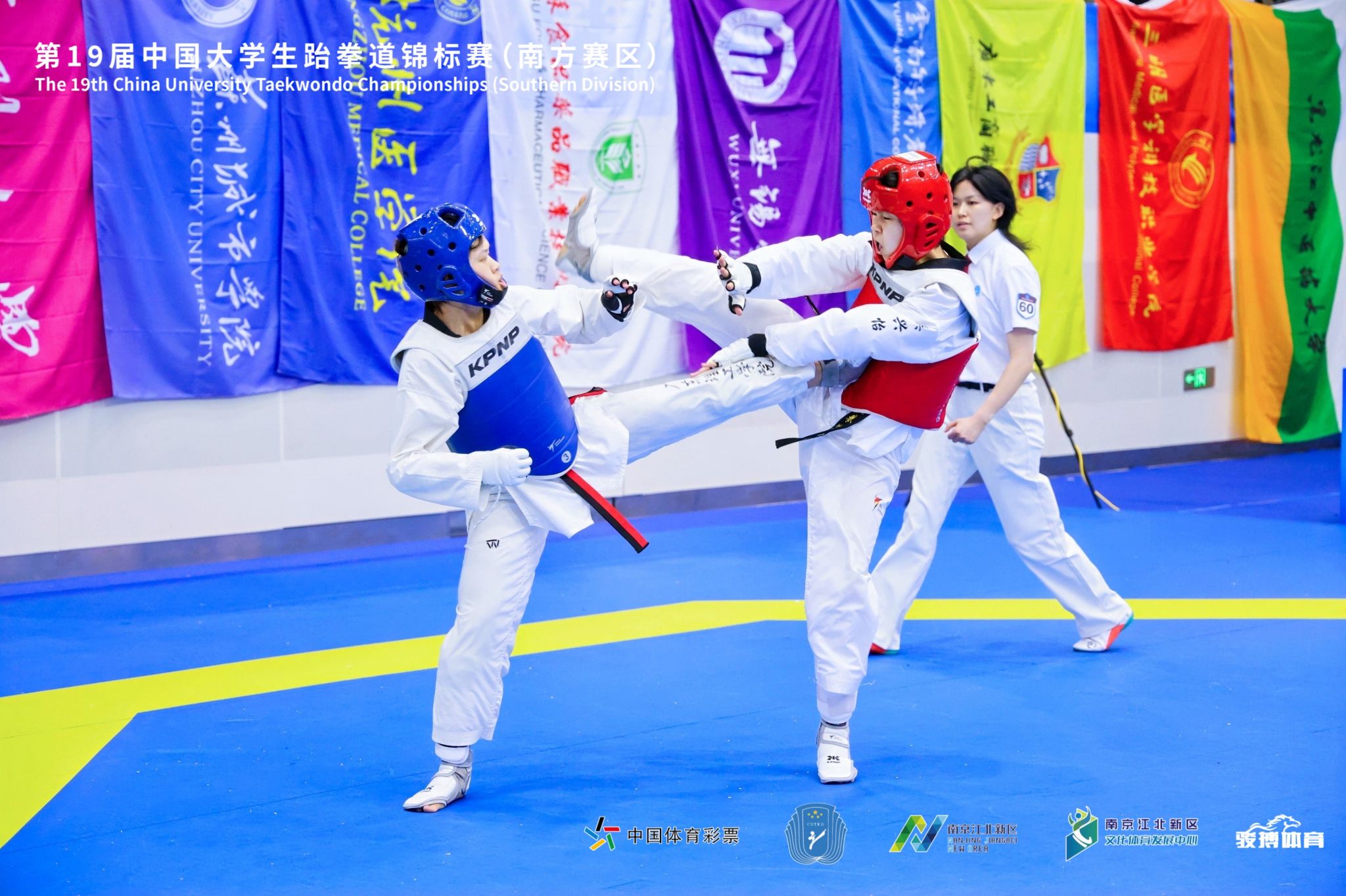 本网讯(体育学院新闻中心)6月8日至6月12日,第19届中国大学生跆拳道锦标赛(南方赛区)在南京江北新区大厂体育中心隆重举行。本次赛事由中国学生体育联合会主办,共设置竞技、品势两大项目,分为甲组、乙组等五个组别,吸引了来自全国232所高校的1800余名运动员参赛。bat365在线中国官网登录入口跆拳道队派出12名运动员参与角逐,最终斩获2金2银1铜的优异成绩,并荣获甲组女子团体总分第一名,同时获得第四名1项、第五名2项、第七名4项、第八名2项等多项荣誉。