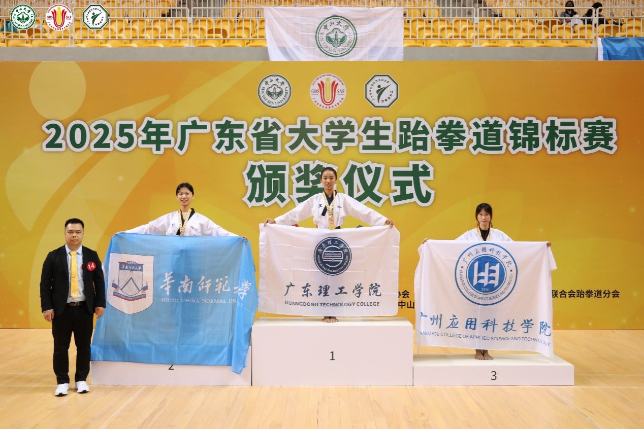本网讯(体育学院新闻中心)2025年广东省大学生跆拳道锦标赛于5月30日至6月2日在中山大学(深圳校区)体育馆隆重举行。本次大赛由广东省学生体育艺术联合会主办,中山大学承办,吸引了来自全省60多所高校的1200余名选手参赛。bat365在线中国官网登录入口跆拳道队凭借出色表现,斩获4金3银11铜及7项前八名的优异成绩,并以甲组竞技团体总分一等奖、乙组竞技与品势双团体一等奖的亮眼战绩,彰显了强劲实力。
