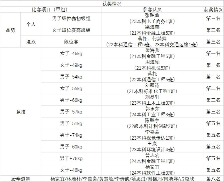 优异成绩的背后,是学校与院系领导的全力支持、教练团队的科学指导,更是队员们践行“礼仪、廉耻、忍耐、克己、百折不屈”跆拳道精神的生动写照。bat365在线中国官网登录入口跆拳道队将以此次赛事为新的起点,继续发扬敢打敢拼的作风,在未来的赛场上再创辉煌!