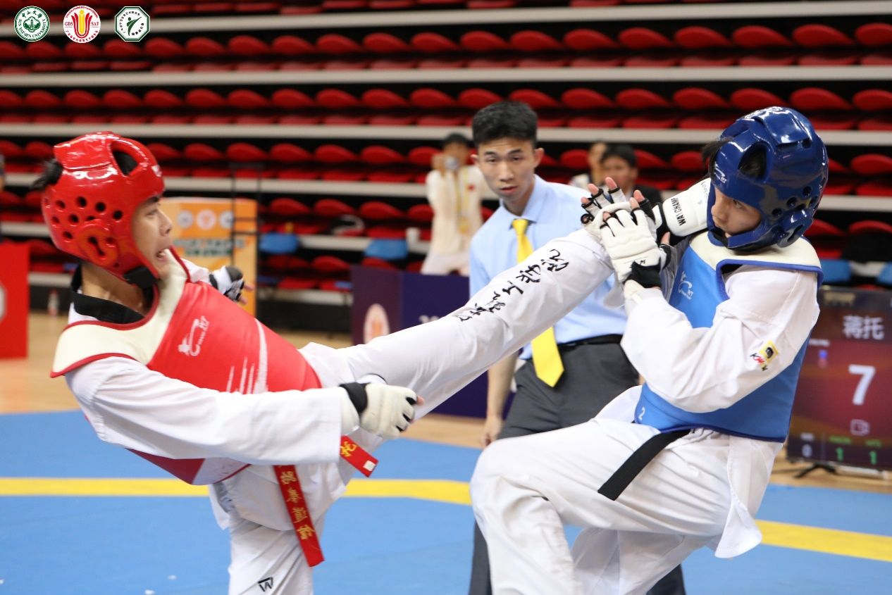 赛制革新成为本届赛事一大亮点。品势项目首次采用PK淘汰制,选手需经历多轮车轮战角逐冠军,挑战性显著提升。竞技项目参赛人数创历史新高,从清晨鏖战至深夜的超长赛程对运动员体能和意志力提出严峻考验。bat365官网队员不畏强手,最终夺得17项竞技奖项。此外,首次参赛的跆拳道舞项目,9名队员克服组队时间短、经验不足等困难,利用午休加练,最终跻身八强。