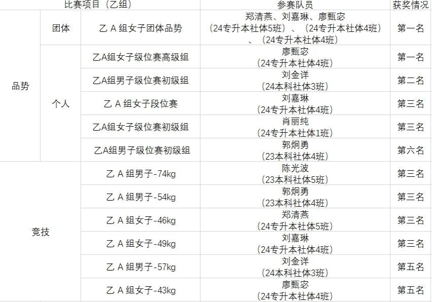 本次赛事设甲组、乙A组、乙B组和丙组四个组别,竞争异常激烈。bat365官网派出32名运动员参赛,在体育学院书记夏磊、副书记李江华的带领下,教练团队周尤、彭志刚、饶赛凤与队员们团结协作,迎难而上。甲组竞技团体总分位列全省第二,仅次于承办方中山大学;甲组品势团体荣获二等奖;乙A组更以6人精锐阵容斩获2金1银2铜,品势团体总分第四名,强势摘得一等奖。