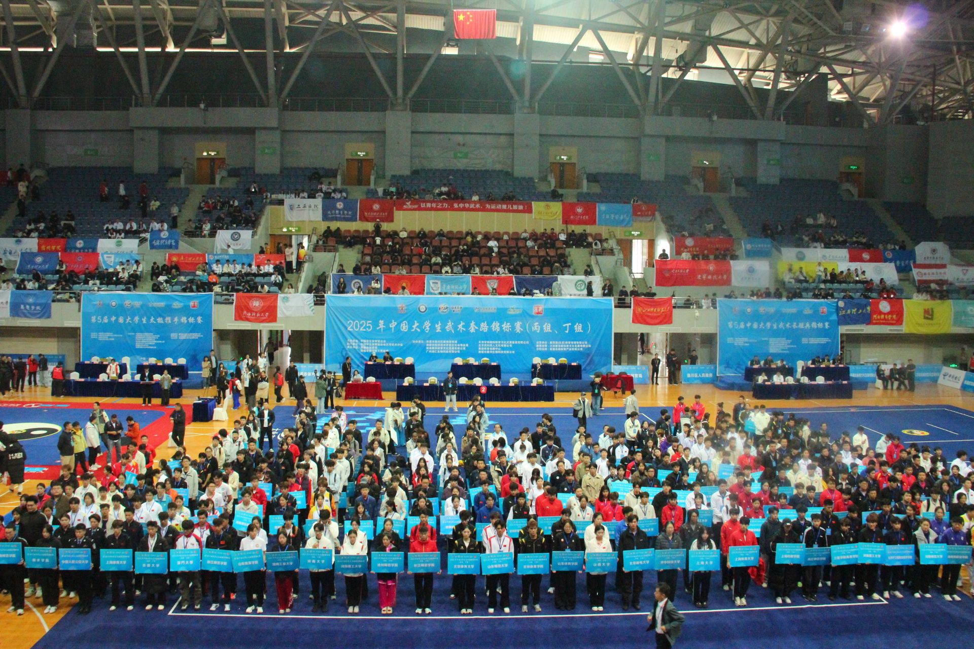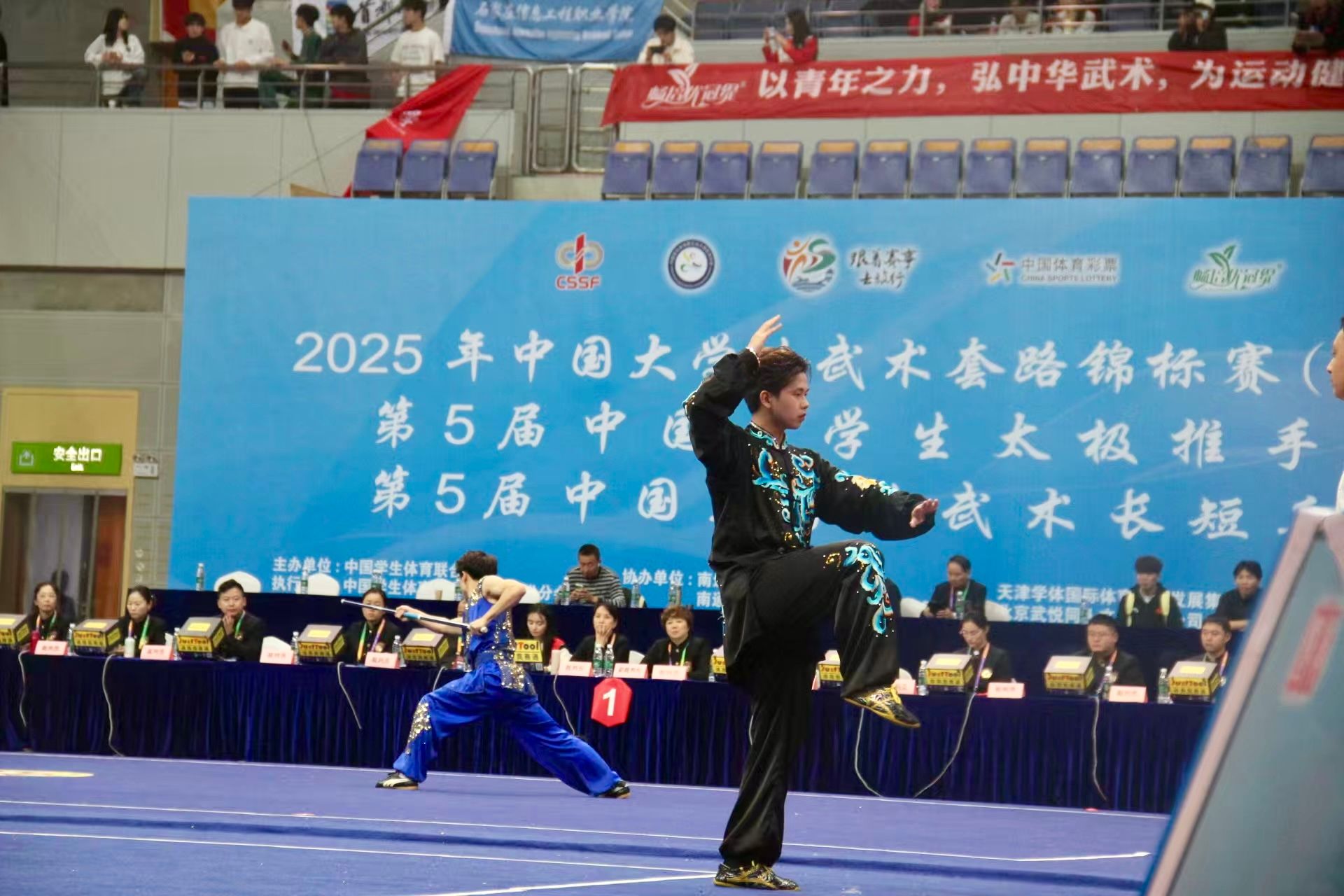 本网讯(体育学院 张亚蒙)2025年10月25日至10月31日,由中国学生体育联合会主办的2025年中国大学生武术套路锦标赛(丙组、丁组)在江苏南通体育会展中心圆满举行。作为国内高校武术领域的顶级赛事,本次比赛吸引了全国200余所高校的2500余名运动员同场竞技,竞争激烈,备受瞩目。