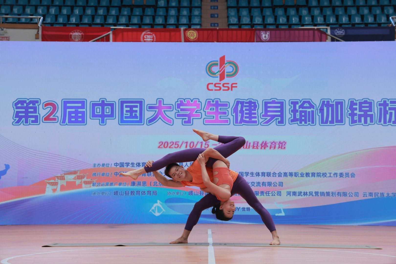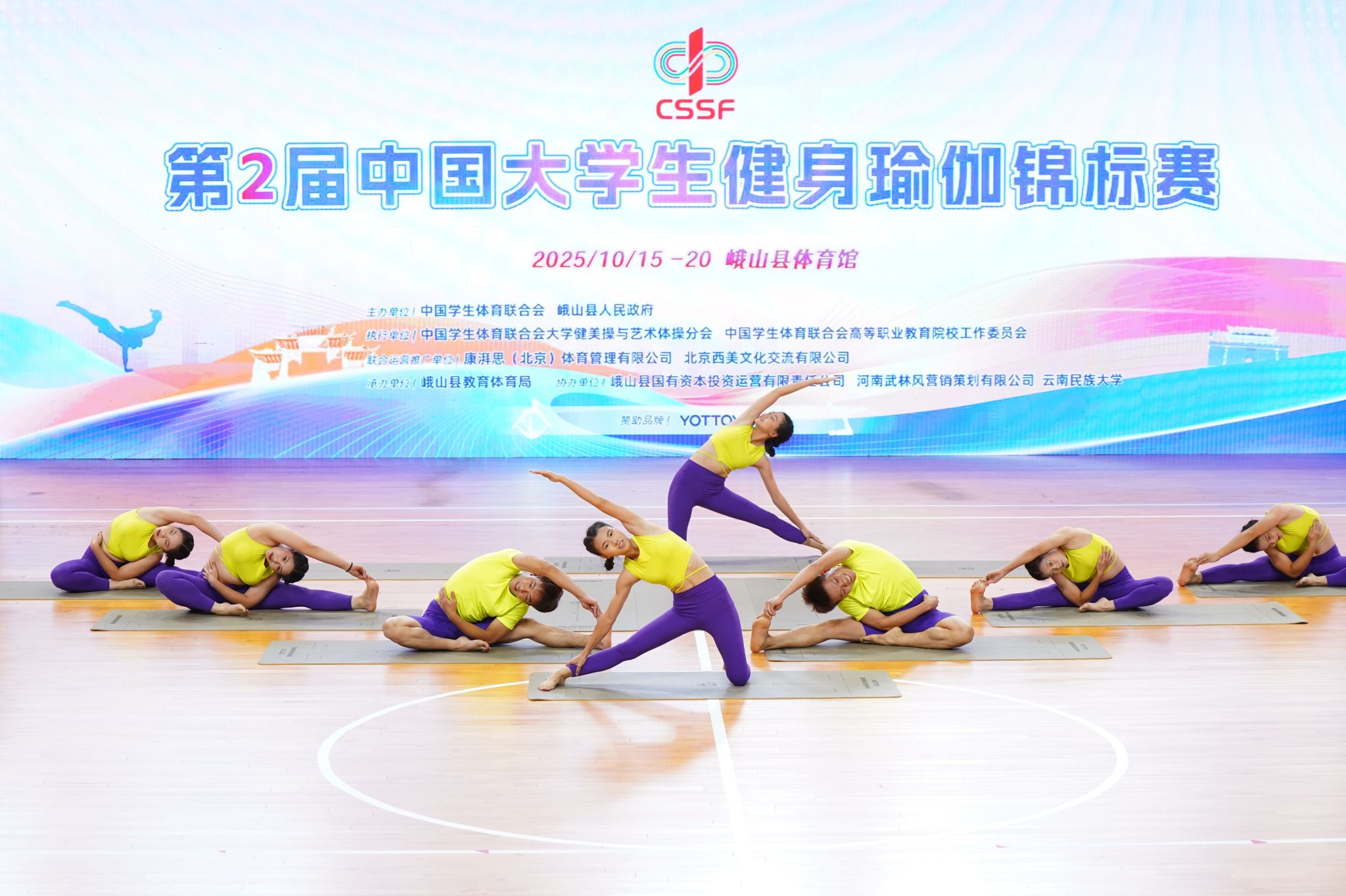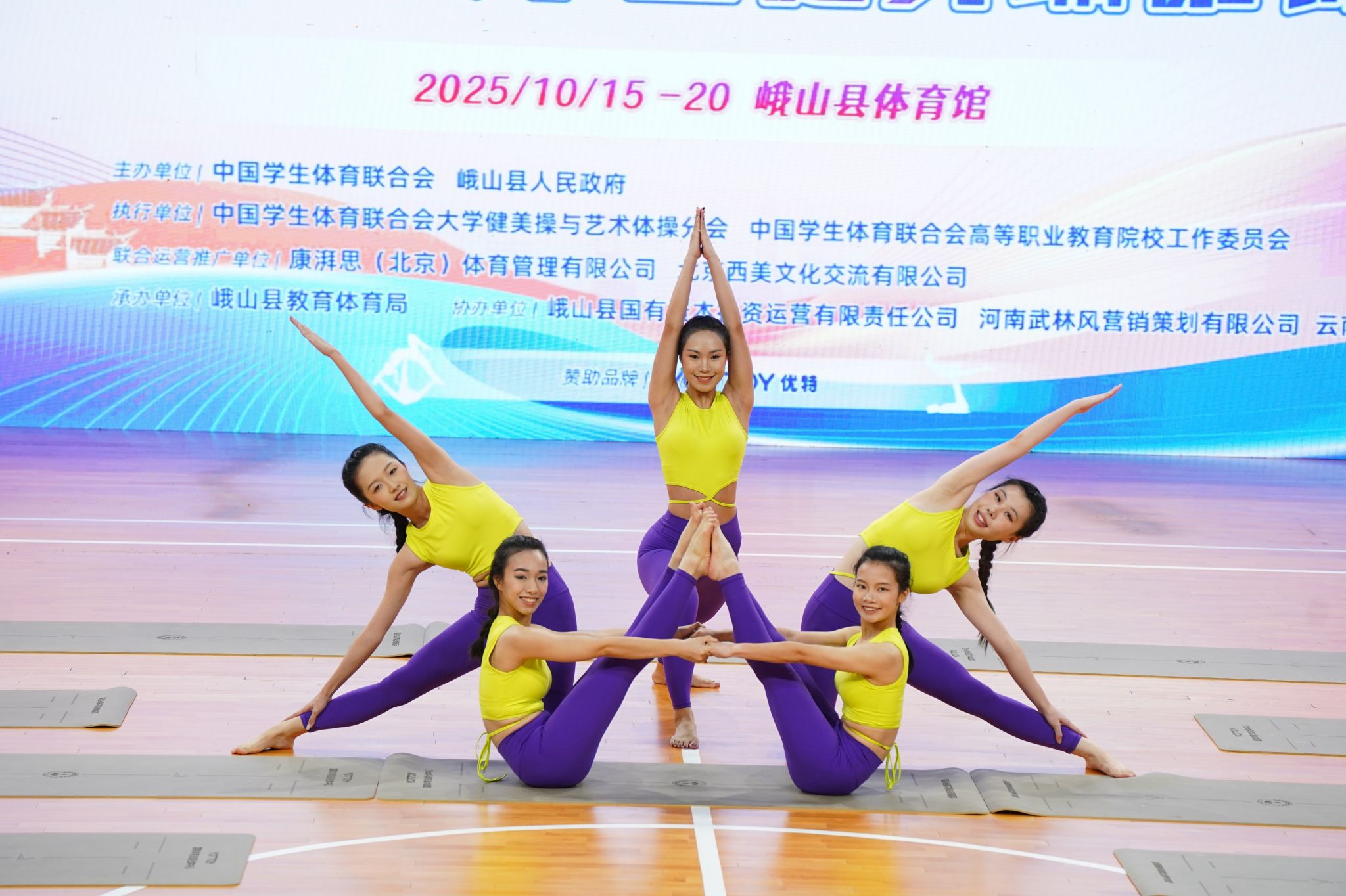 本网讯(体育学院)2025年10月15日至20日,第二届中国大学生健身瑜伽锦标赛在风景秀丽的云南省峨山彝族自治县成功举办。本届赛事设有双人、集体等多个竞赛项目,汇聚了来自北京大学、首都师范大学、南京大学等全国52所高校的576名运动员同场竞技。在为期五天的赛程中,全体运动员以精准的体式、稳定的核心控制与高度的默契配合,深刻诠释了健身瑜伽“身心合一”的深厚内涵与独特魅力。