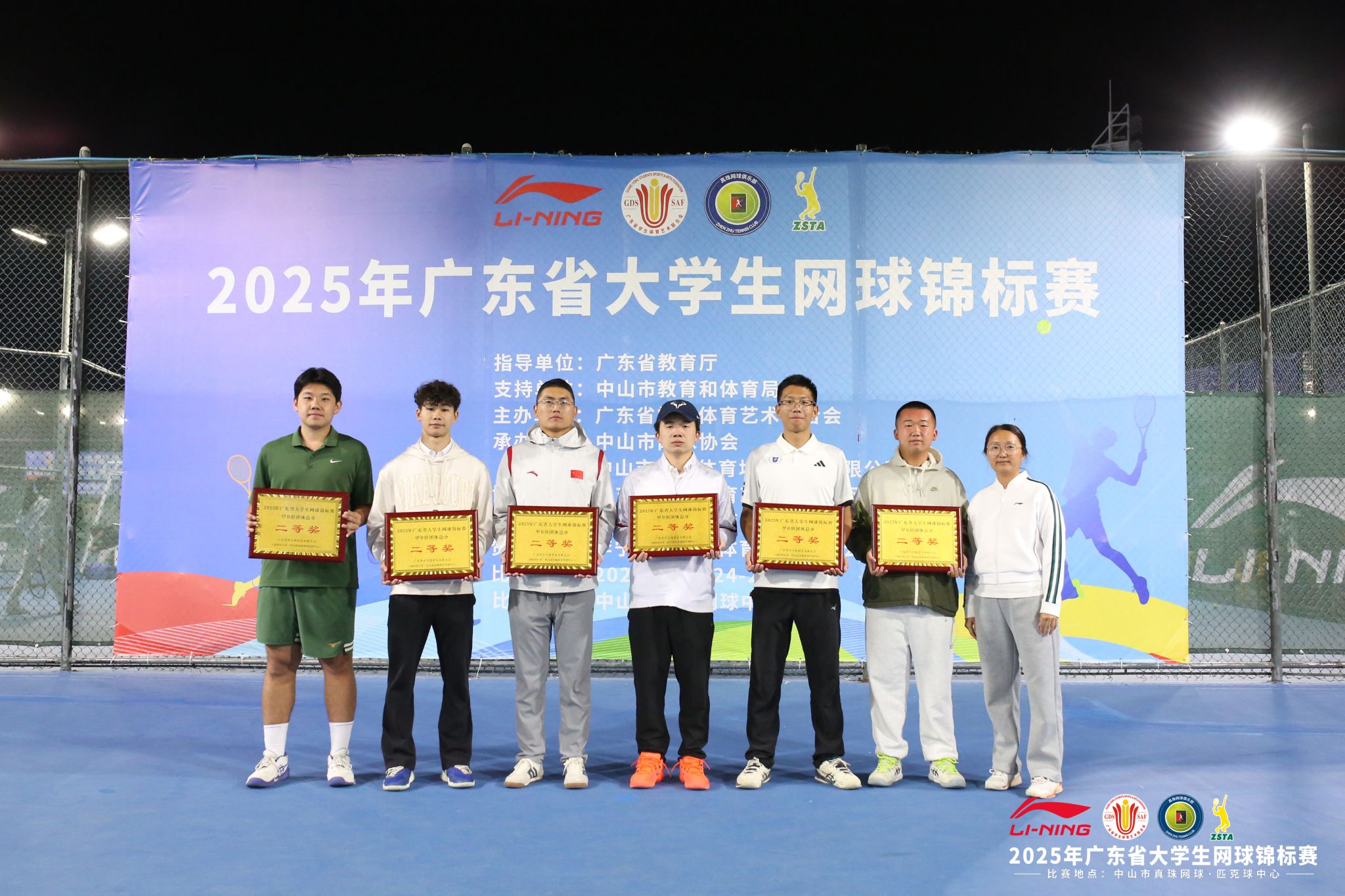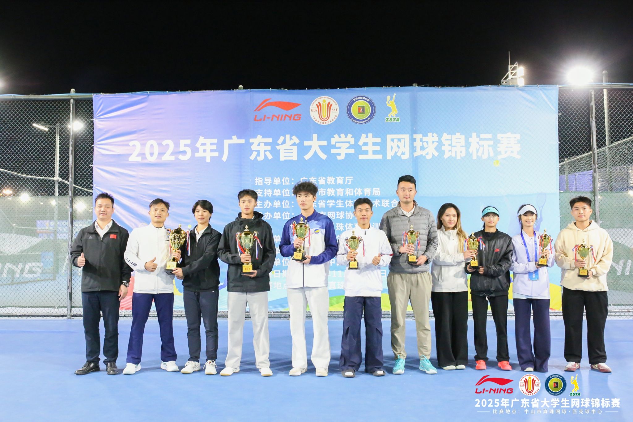 本网讯(体育学院)由广东省学生体育艺术联合会主办的2025年广东省大学生网球锦标赛在中山真珠网球中心圆满落幕。本次赛事于11月24日至28日激情开赛,汇聚全省高校646名网球精英同台竞技。bat365在线中国官网登录入口网球队由体育学院院长肖斌担任领队,夏磊、刘涛、胡进城三位老师担任教练员,派出18名运动员参赛,凭借扎实的技术功底、默契的团队协作与顽强的拼搏精神,在各组别赛事中捷报频传,最终斩获乙A组团体总分一等奖,甲B组团体总分二等奖。用实力书写青春荣光。