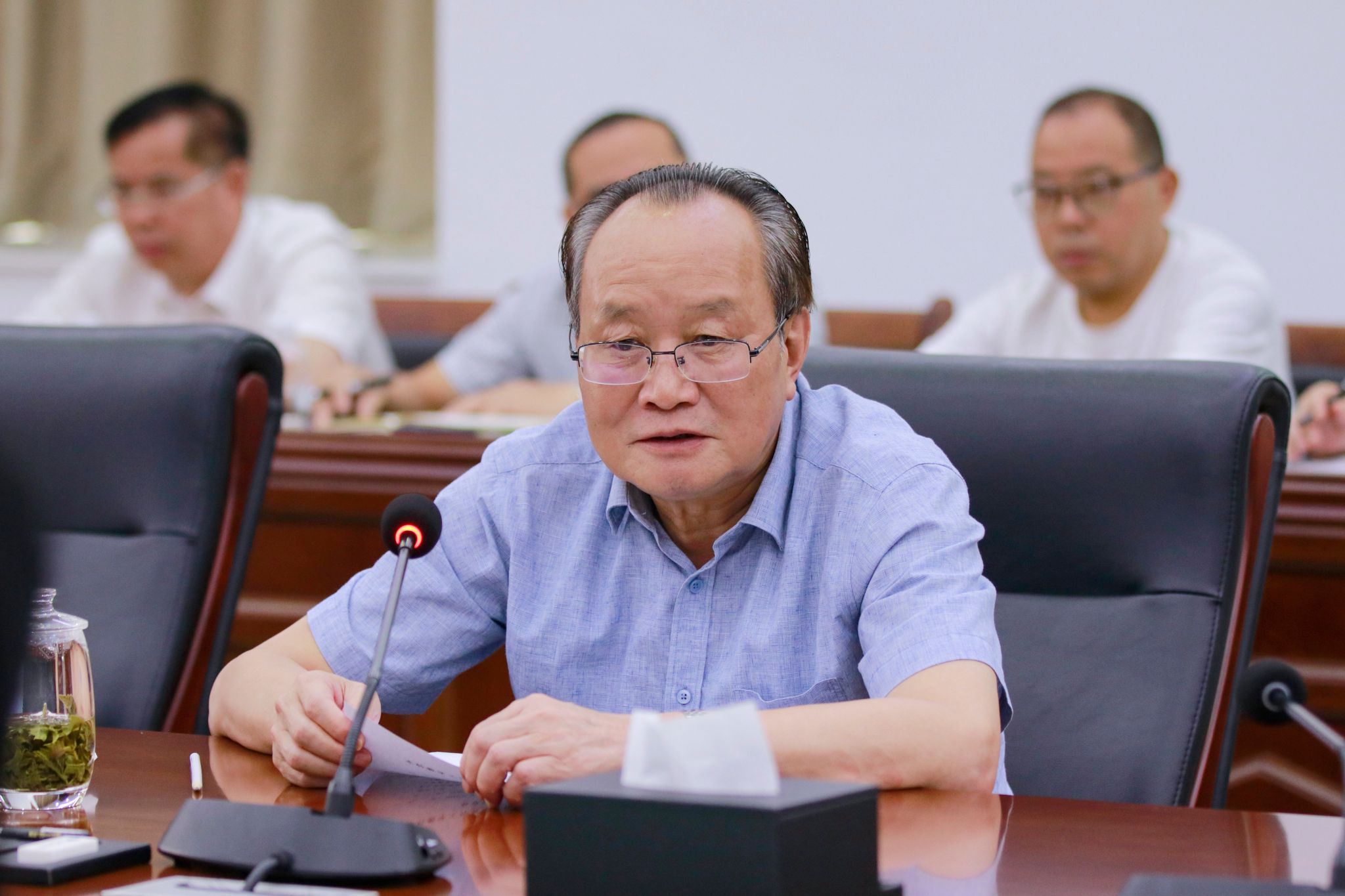 最后,胡海建书记通报年检工作。他指出,年检工作已圆满结束,并高度肯定了各部门的工作成效与取得的成绩。同时,他着重强调,各部门需认真复盘迎检工作全过程,深刻总结经验教训。