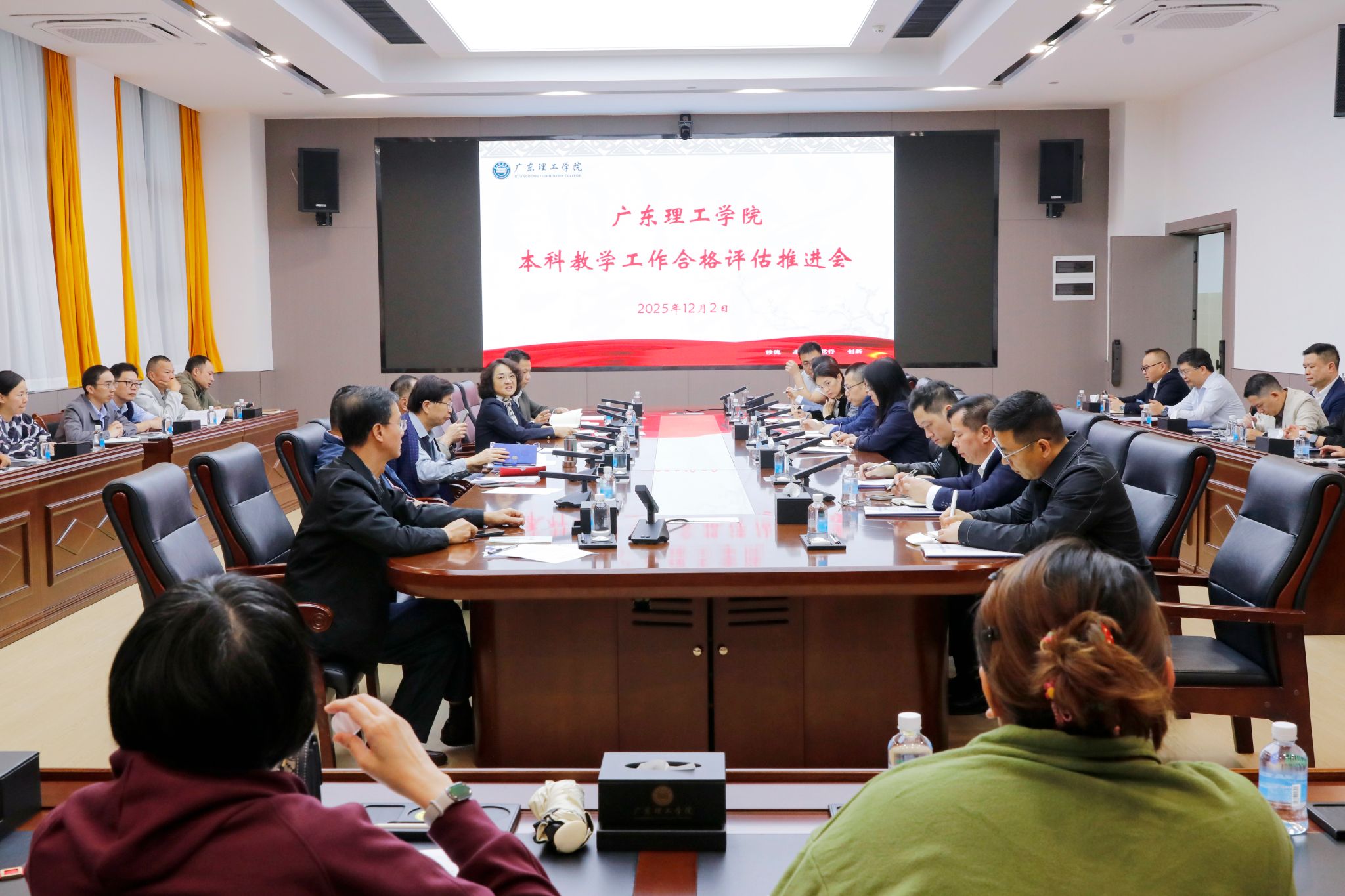 本网讯(教学质量监测与评估中心)12月2日上午,学校在求实楼9楼会议室召开本科教学合格评估工作推进会。全体校领导、各部门及各单位党政主要负责人,以及教学质量监测与评估中心全体成员参加会议。会议由常务副校长柴维斯主持。
