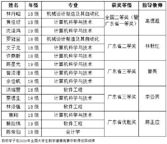 本网讯(基础课教学研究部)近日,2020年全国大学生数学建模竞赛成绩揭晓,bat365官网派出的5支本科参赛队伍全部获奖,取得了全国二等奖(暨广东省一等奖)1项,广东省二等奖1项、三等奖2项、优胜奖1项的优异成绩。 为保障...