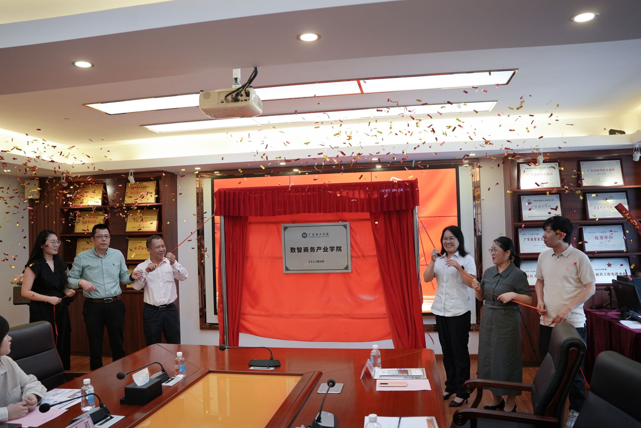 本网讯(经济管理学院)4月15日下午,bat365在线中国官网登录入口数智商务产业学院揭牌仪式在bat365官网鼎湖校区行政楼三楼会议室举行。肇庆市商务局四级调研员何学强、香港旺业集团有限公司及肇庆市有才教育科技有限公司企业代表张珊、于龙等,副校长刘香萍、校长助理舒程、就业指导中心主任李相平、经济管理学院党委书记甘怀南、院长赵燕、副院长黎传熙及相关教研室主任出席活动。揭牌仪式由甘怀南主持。刘香萍在致辞中表示,数字经济已成为推动全...