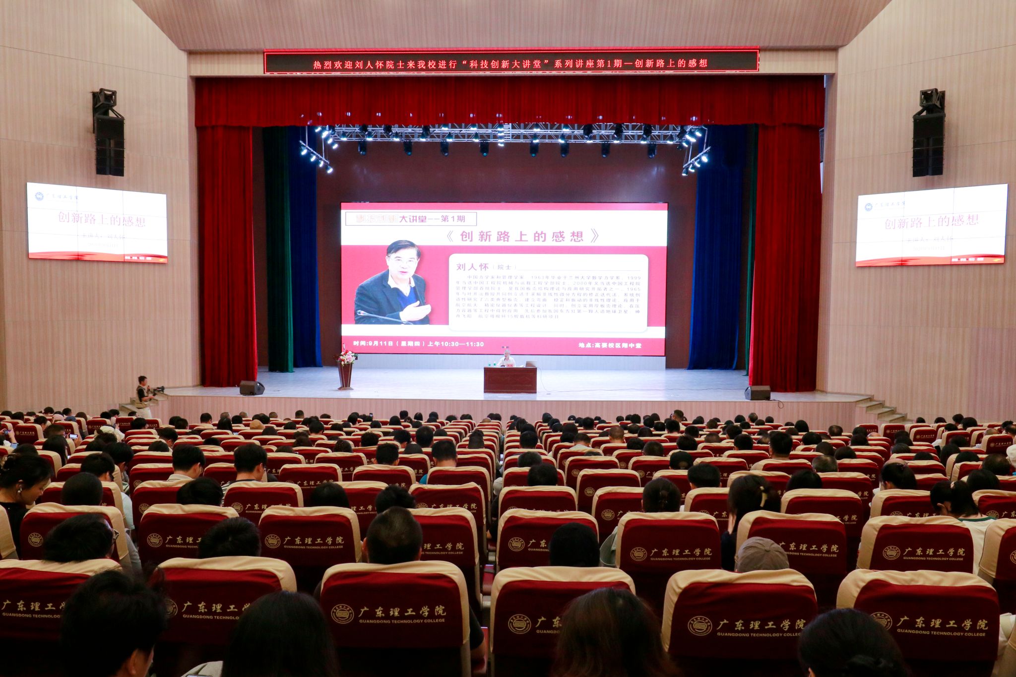 本网讯(科技处 许昊)9月11日上午,bat365在线中国官网登录入口高要校区大礼堂内座无虚席。由学校精心策划打造的“科技创新大讲堂”系列品牌学术活动第一期在此隆重启幕。本期讲堂特邀中国工程院院士、著名力学与管理学专家刘人怀教授担任主讲嘉宾,以“创新路上的感想”为题,为数千名师生带来一场启迪思维、引领方向的学术盛宴。讲堂由常务副校长柴维斯教授主持。高瞻远瞩启新程,大讲堂点亮创新之光活动伊始,柴维斯代表学校对刘人怀院士...