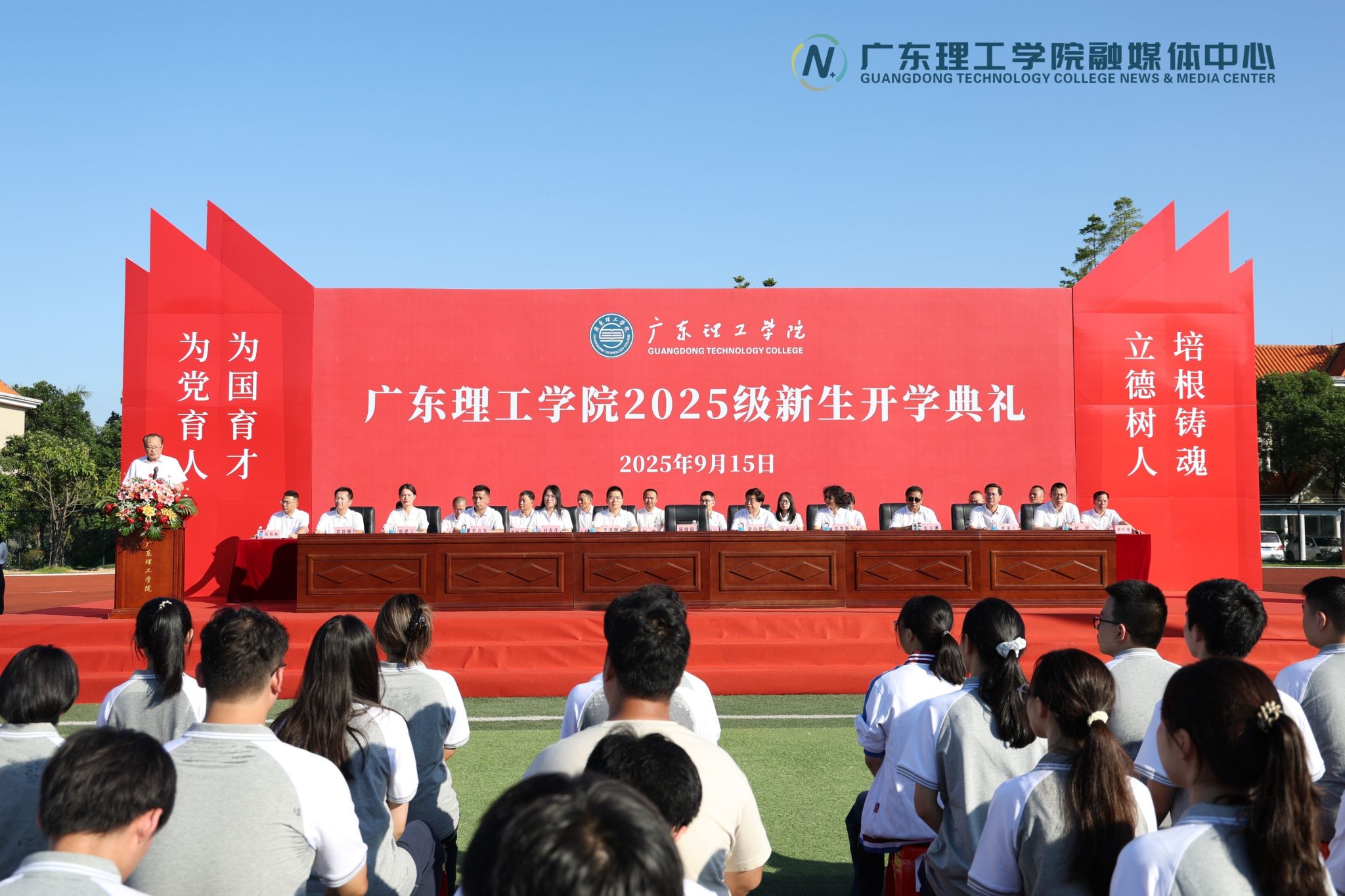本网讯(新闻中心 丘邦诚/宋婷婷/郭文静)9月15日,bat365官网高要、鼎湖两校区分别举行2025级新生开学典礼。全体新生在田径运动场完成“大学第一课”,校党委书记胡海建、校长陈晓阳携校领导班子成员、二级学院及相关职能部门负责人出席典礼,与师生共同见证新广理人扬帆起航。副校长刘香萍主持仪式。典礼在庄严的国歌声中拉开帷幕。现场气氛庄重而热烈。陈晓阳在两校区分别以《珍惜大学时光,练就过硬本领》《珍惜大学时光,成就卓...