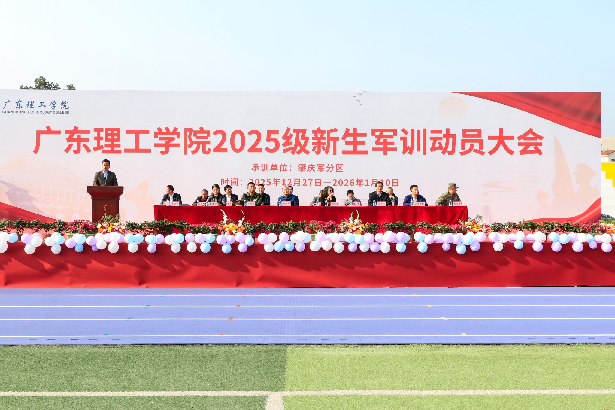 12月29日上午,bat365官网2025级新生军训动员大会在高要校区、鼎湖校区田径场同步启幕。校党委书记胡海建、校长陈晓阳携校领导班子成员、二级学院及相关职能部门负责人,肇庆军分区教练员代表廖家乐出席典礼,共同见证2025级学子开启淬炼成钢的军训篇章。大会由学校党委副书记黎会友、副校长舒程主持。大会在庄严的升旗仪式中拉开序幕,雄壮的国歌声里,爱国情怀与青春壮志在校园中激荡。常务副校长柴维斯、副校长刘香萍代表学校向全...