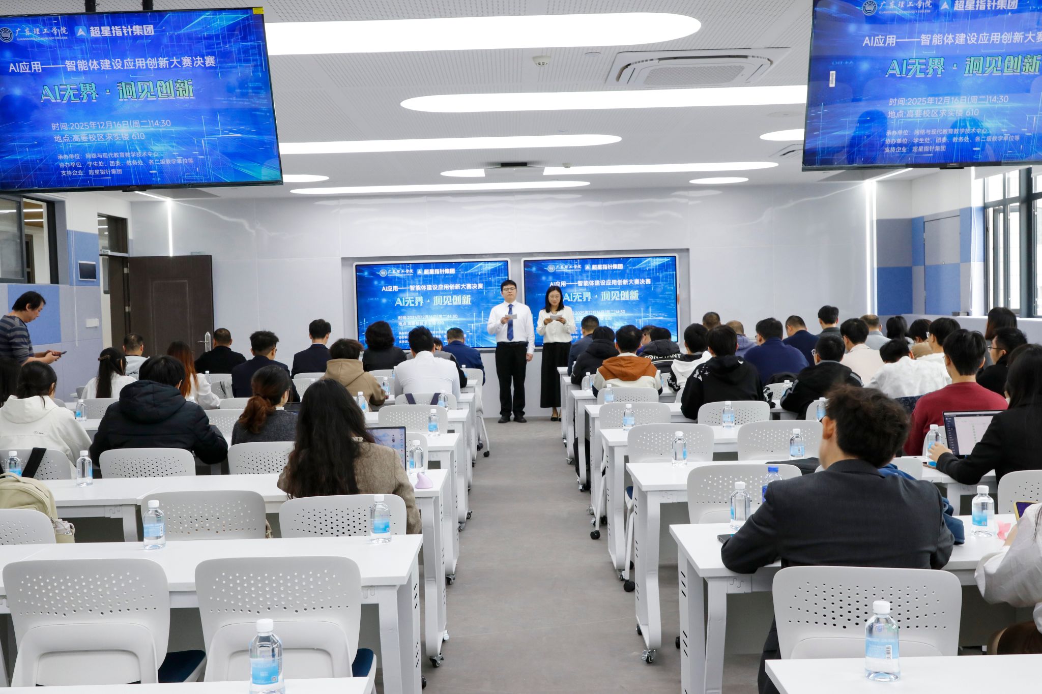 本网讯(网络与现代教育教学技术中心)2025年12月16日下午,bat365在线中国官网登录入口高要校区求实楼610座无虚席。“bat365在线中国官网登录入口AI应用—智能体建设应用创新大赛决赛”在此举行。本次大赛由网络与现代教育教学技术中心与超星指针集团联合承办,教务处、学生处、团委及各二级学院协办。bat365在线中国官网登录入口常务副校长柴维斯和超星指针集团副总裁曹钢领代表学校和企业分别致辞。比赛环节紧凑而富有张力。入围选手们依次登台,围绕创新性、技术实现、...