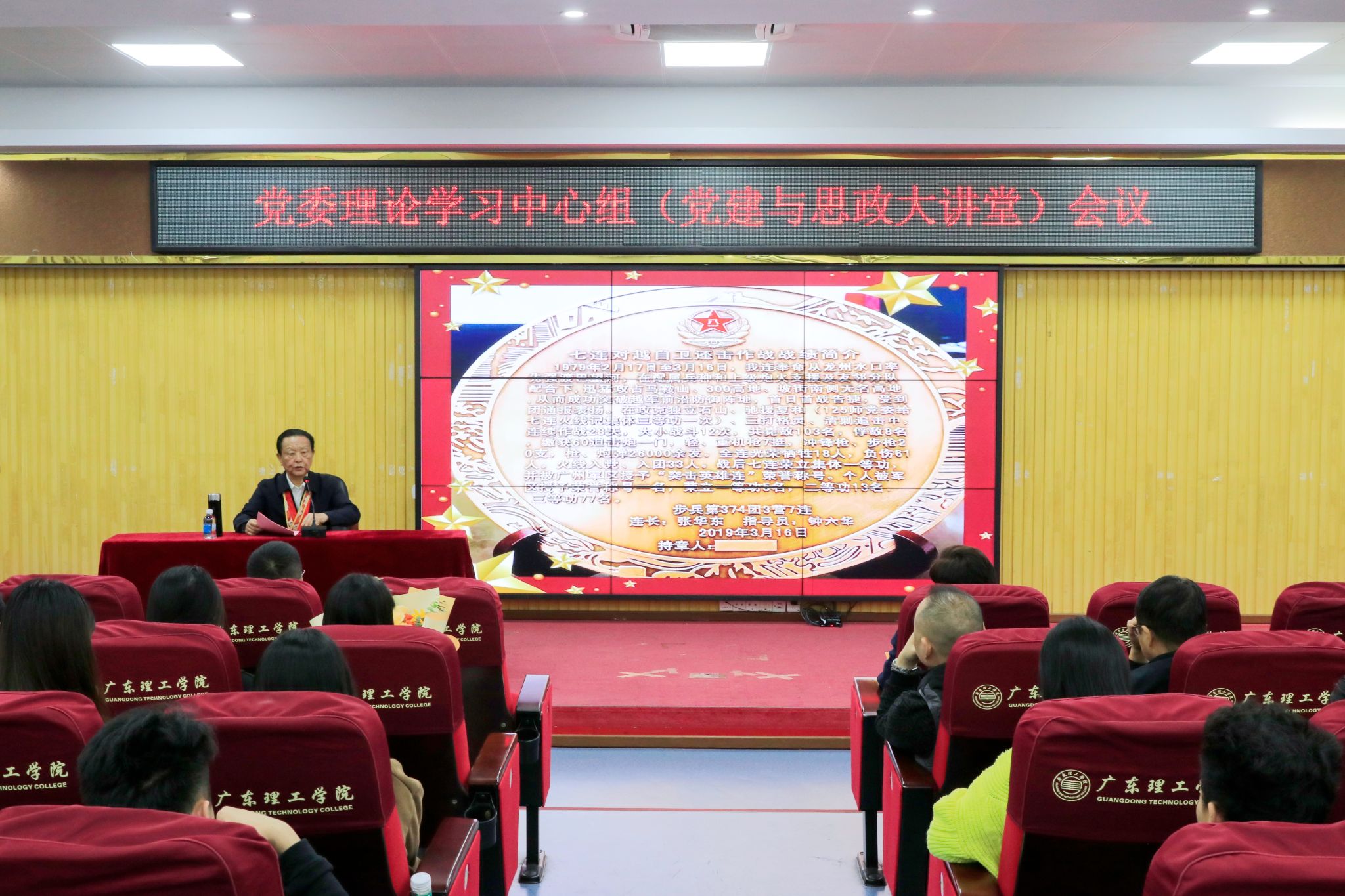 本网讯(新闻中心)12月23日,bat365官网在高要校区42栋101室举办“党建与思政大讲堂”英模报告会。报告会特邀一九七九年对越自卫反击作战突击英雄连连长、一等战功荣立者、九江市原市委副书记、正厅级巡视员张华东同志作专题分享,旨在传承红色基因、弘扬英模精神,为全校师生筑牢思想根基、凝聚奋进力量。学校党委委员、二级学院党组织代表及师生党员、学生代表共同参会聆听。报告会由学校党委副书记黎会友主持。学校党委书记胡海建...