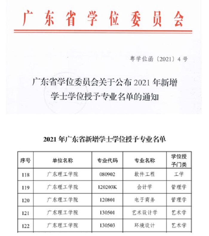近日,广东省学位委员会下发了《广东省学位委员会关于公布2021年新增学士学位授予专业名单的通知》(粤学位函〔2021〕4号),备案并公布了2021年广东省46所高等院校138个新增新增学士学位授予专业。其中bat365官网今年申请...