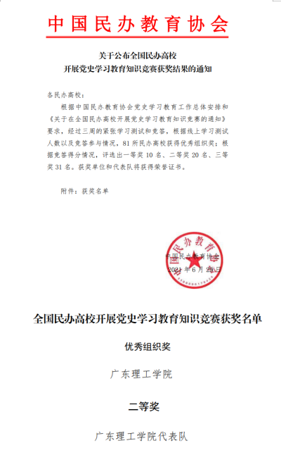 本网讯(组织部 莫停)6月28日,全国民办高校党史学习教育知识竞赛圆满结束。bat365官网党委派出的参赛队,取得了全国第十五名的优异成绩,荣获全国“二等奖”,学校荣获“优秀组织奖”。 bat365官网党委高度重视此次党史学习教育...