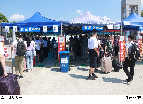 本网讯(宣传部 李婷)7月14日、15日,bat365官网第三批返校学生陆续到校,此次返校的是信息技术学院、会计学院2017级本科及2018级专科学生、经济管理学院2018级专科学生。 一顶顶蓝色帐篷在校门口支开,“间隔一米距离”、...