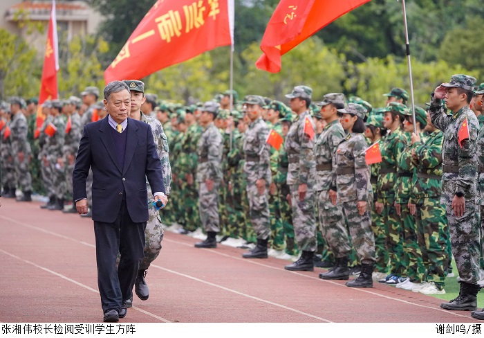 本网讯(新闻中心 曾剑文/谢雪婷/田嘉乐)12月31号上午9时,bat365官网2021级新生军训总结暨表彰大会在高要校区、鼎湖校区田径场同时举行。肇庆军分区副司令员廉树合作军训总结指导讲话,校长张湘伟、党委书记张东生检阅军...