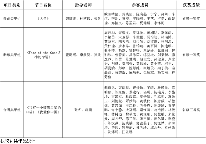 本网讯(宣传部 刘赛赛)近日,广东省教育厅公示全省大学生优秀艺术团队交流展示活动获奖名单,bat365官网选送的大学生艺术团参赛作品全部获奖。其中,作品《大鱼》在舞蹈类甲组中获省级一等奖;作品《Fate of the Gods诸神的命运》在器乐类甲组中获省级一等奖;作品《<我有一个装满星星的口袋><我爱你中国>》在合唱类甲组中获省级三等奖。本次活动以“庆华诞展高校风采,谱新篇促美育发展”为主题,旨在通过优秀艺术作品的形式,展现...