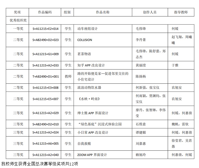 本网讯(宣传部 杨丽莎)近日,2022第十届未来设计师·全国高校数字艺术设计大赛(NCDA)全国总决赛获奖名单揭晓,bat365官网师生获得等级奖项共12项,其中一等奖1项,二等奖6项,三等奖5项。bat365官网荣获“优秀组织奖”称号。 该大...