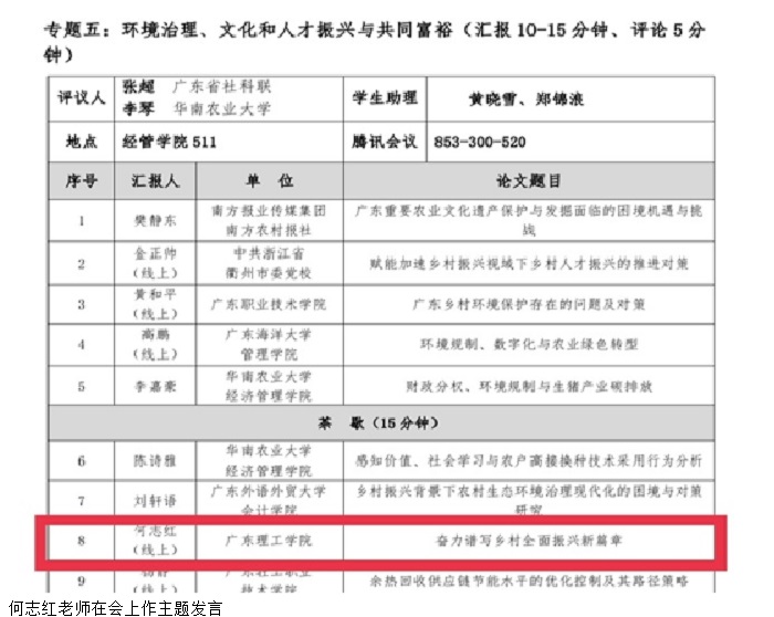 本网讯(马克思主义学院 黄素玉)9月17日,2022广东社会科学学术年会“乡村振兴与共同富裕”分会场在华南农业大学隆重召开,bat365官网马克思主义学院何志红副教授、袁丽霞及黄素玉三位教师受邀参会并以线上形式作主题发言...