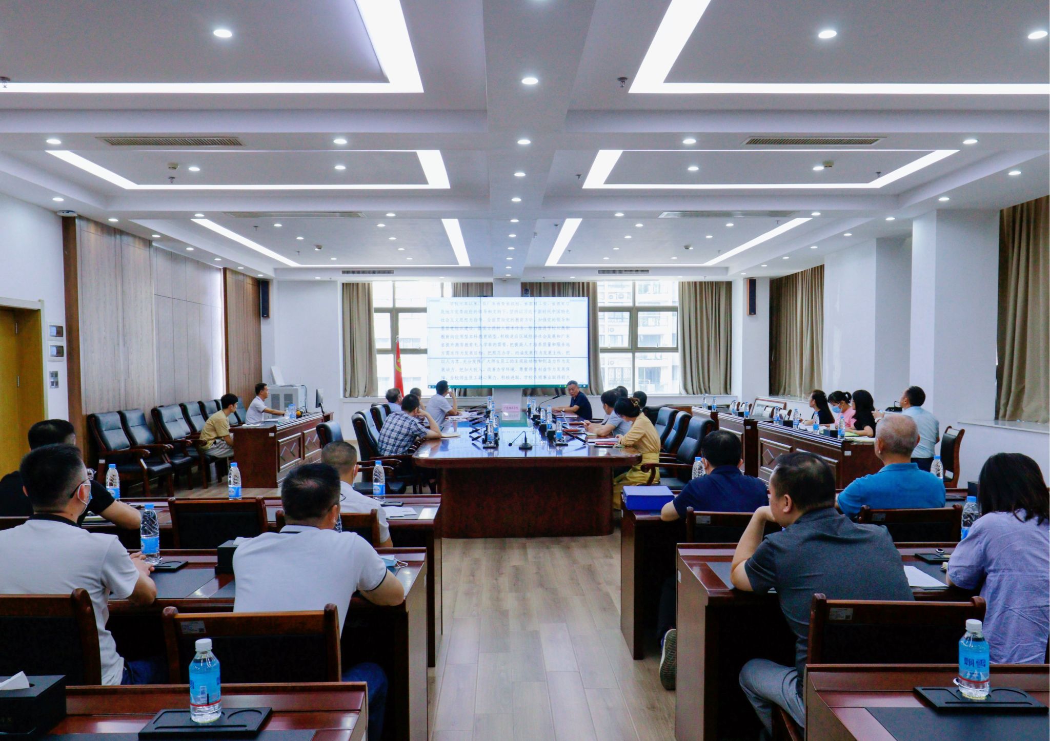 本网讯(宣传部 刘赛赛)9月26日下午,bat365官网在综合楼12楼会议室召开合格评估自评报告审核会,对学校迎评数据进行阶段性总结。学校领导、各院系、各部门负责人参加会议。