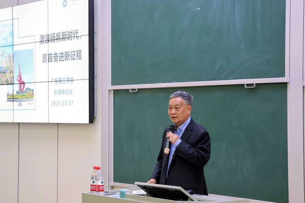 本网讯(新闻中心 林粤湘/邓双蓉)3月7日上午,校长张湘伟以“激浪扬帆新时代,昂首奋进新征程”为主题,在鼎湖校区6栋桃李厅开讲新学期“思政第一课”。建设学院325名学生到场聆听。讲座由马克思主义学院王和萍老师主持。张湘伟强调“教育是国家发展的根本”,学校要立足长远发展,进一步落实好立德树人根本任务,为党育人、为国育才。他强调,同学们要重视专业基础、努力深造、提升自我,以孜孜不倦的精神努力钻研学科知识,...