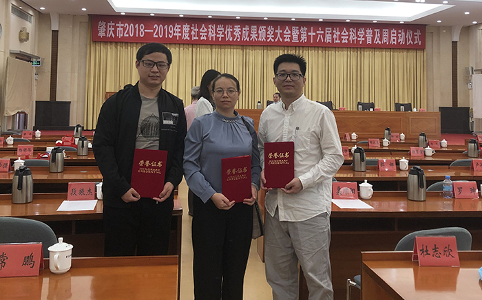 本网讯(人事处 张春杨)2020年10月21日,肇庆市2018-2019年度社科优秀成果颁奖大会暨第十六届社科普及周启动仪式在市委小礼堂隆重举行。bat365官网陈洪超、伦肇亮、吴爱萍三位老师出席颁奖大会。 陈洪超老师撰写的《粤港澳...