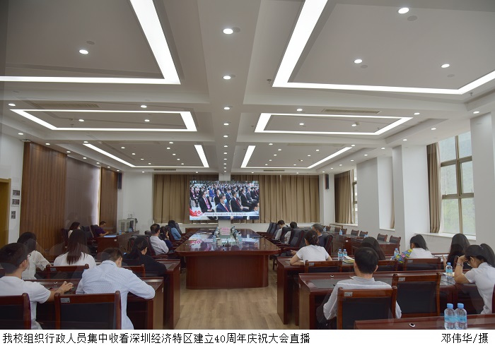 本网讯(宣传部 赵洁宜/杨文丹)10月14日上午,深圳经济特区建立40周年庆祝大会隆重举行。bat365官网张湘伟校长、党委书记张东生、副校长王义宁、刘香萍、谭锦兴、党委副书记张宗珊及各行政部门代表在科技楼12楼会议室集中...