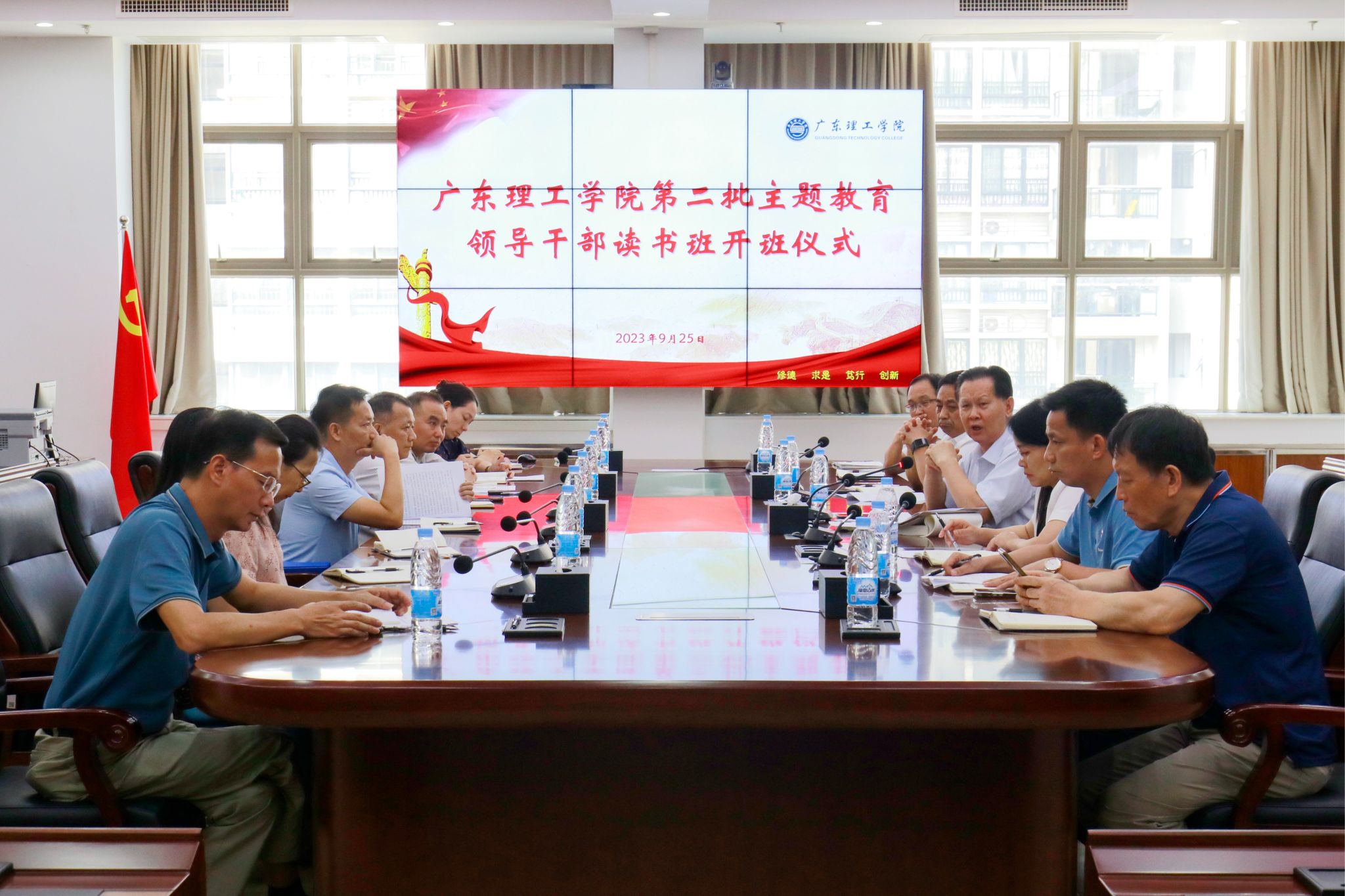 本网讯(宣传部)9月25日,bat365官网在综合楼12楼会议室召开第二批主题教育读书班开班仪式。学校党委书记、学校学习贯彻习近平新时代中国特色社会主义思想主题教育领导小组组长张东生作辅导报告。全体校领导、党委部门正职负责人、行政部门党员正职负责人、各党总支书记、直属党支部书记等参加开班仪式。党委副书记张宗珊主持开班仪式。张东生的辅导报告标题是《在主题教育中深化理论学习,全面落实“以学铸魂、以学增智、以学正风、...