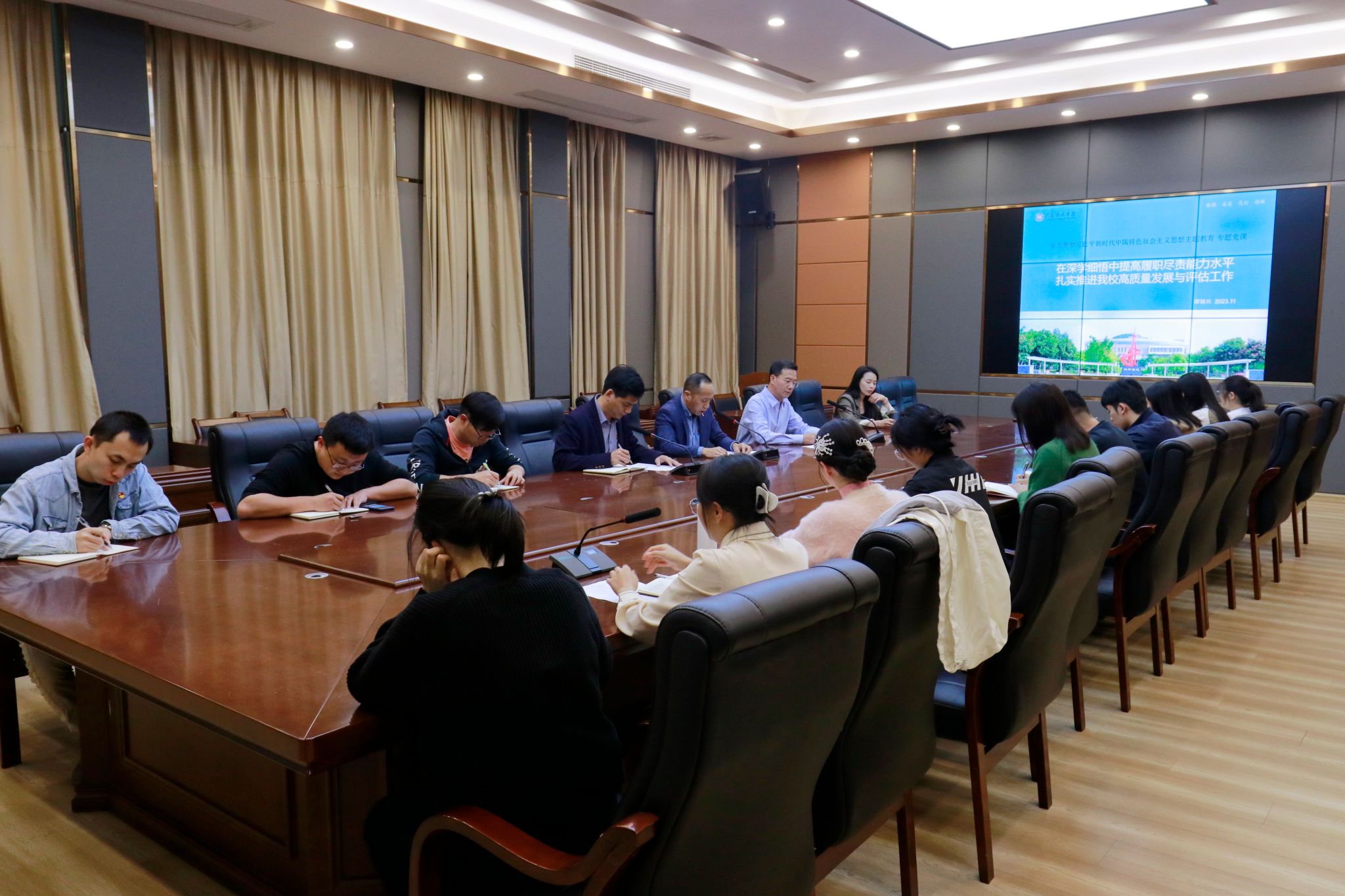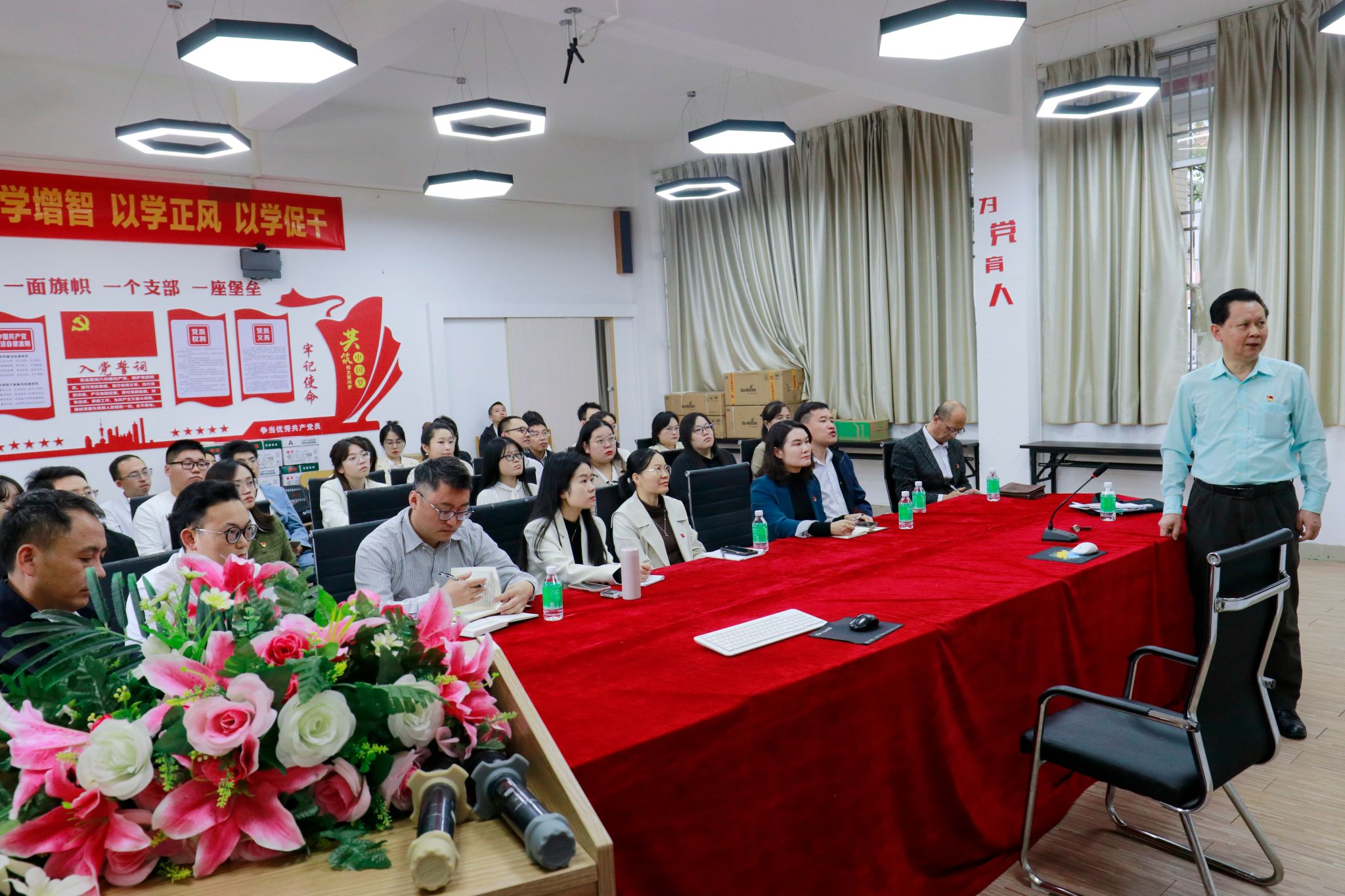 本网讯(机关第二党支部 李家辉)为深入开展第二批主题教育,11月21日下午,副校长谭锦兴为机关第二党支部全体党员开讲党课。党课由机关第二党支部书记钟兆天主持。谭锦兴以《在深学细悟中提高履职尽责能力水平,扎实推进bat365官网高质量发展与评估工作》为题,重点围绕“以学促干”与“提高履职尽责能力水平”两方面进行深入阐述。谭锦兴强调,我们要把握好习近平新时代中国特色社会主义思想的世界观和方法论,坚持好、运用好贯穿其...