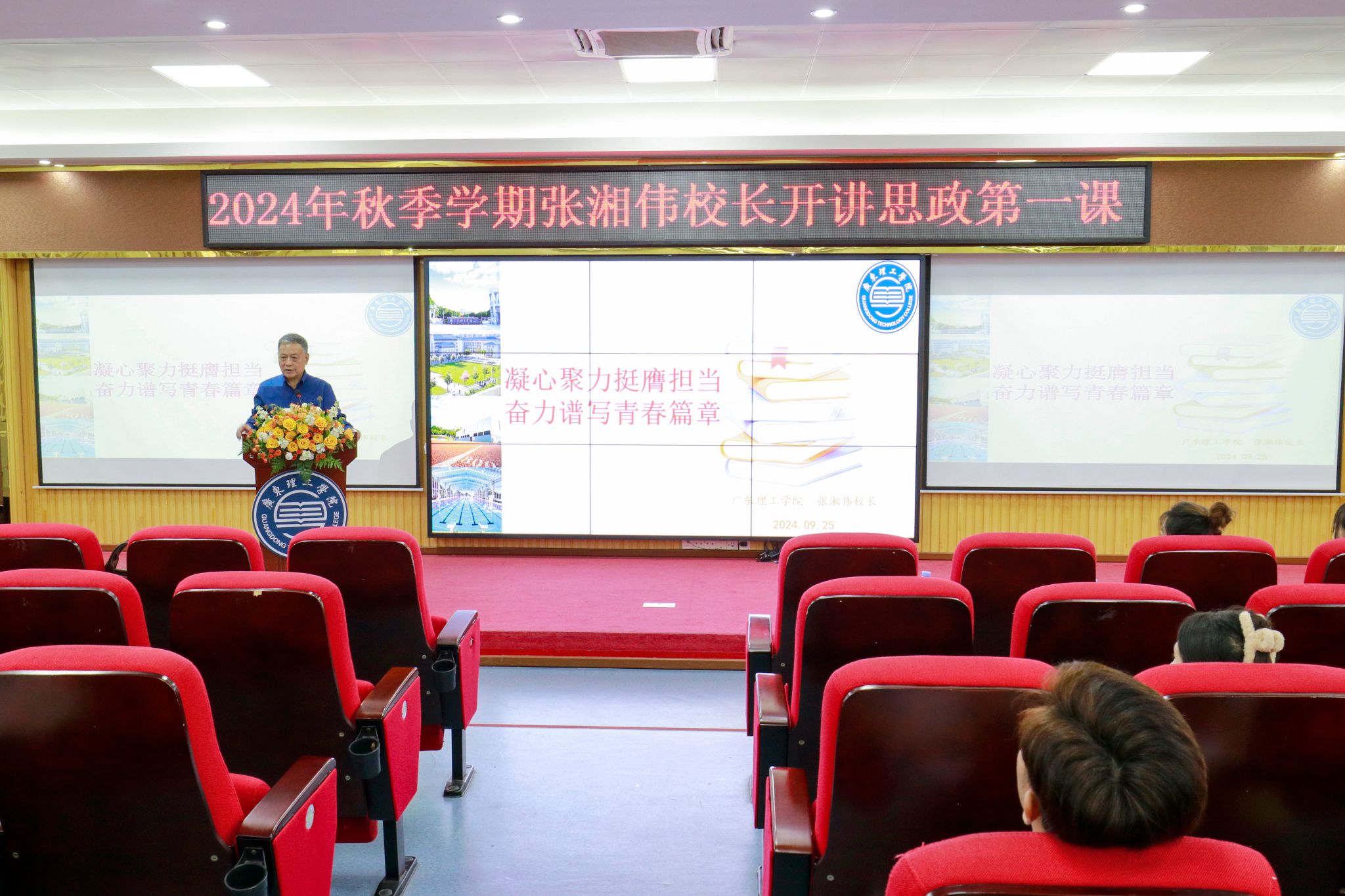 本网讯(党委宣传部 刘赛赛 新闻中心 吴泓广/郭雨瑶/何丽婷)9月25日,秋风送爽,学意正浓,bat365官网高要校区42栋学术报告厅内座无虚席,一场以“凝心聚力,挺膺担当,奋力谱写青春篇章”为主题的“思政第一课”在此隆重开讲。本次讲座由bat365官网校长张湘伟亲自授课,吸引了来自艺术设计、会计等专业学子汇聚一堂,共同聆听这场关于教育、科技与人才深度融合的思想盛宴。张湘伟深入传达学习党的二十届三中全会精神,剖析新时代背景下教...