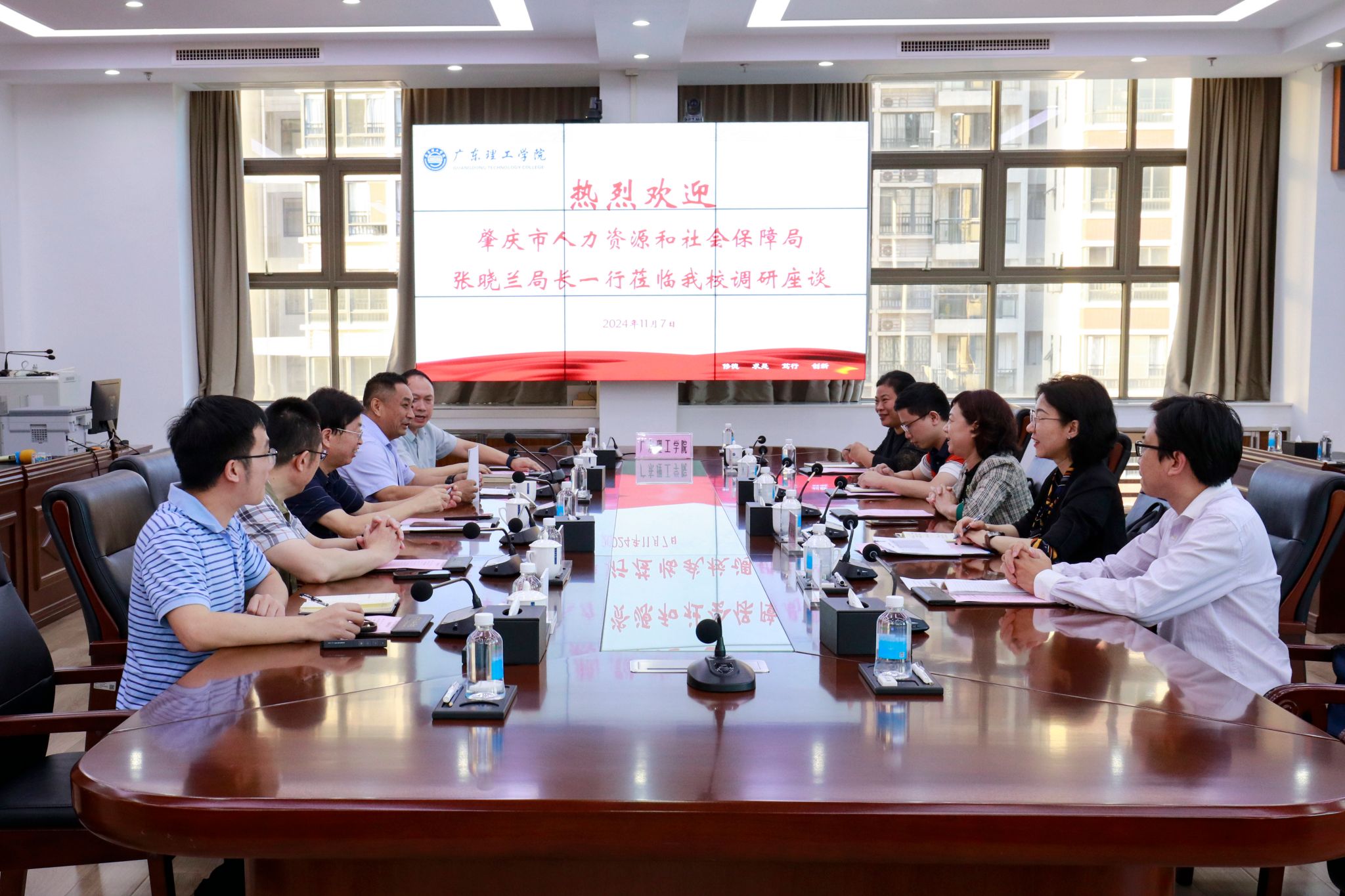 本网讯(就业指导中心)11月7日,肇庆市人力资源和社会保障局党组书记、局长张晓兰一行5人莅临学校调研毕业生就业工作,学校党委书记胡海建、党委副书记张宗珊、校长助理舒程及就业指导中心相关人员与张晓兰一行在综合楼12楼会议室举行座谈交流,毕业生就业指导中心主任李相平主持会议。胡海建对张晓兰一行莅临考察调研表示热烈欢迎,感谢肇庆市人社局一直以来对bat365官网就业工作的大力支持,着重介绍了近期计划开展的“关爱之行--...