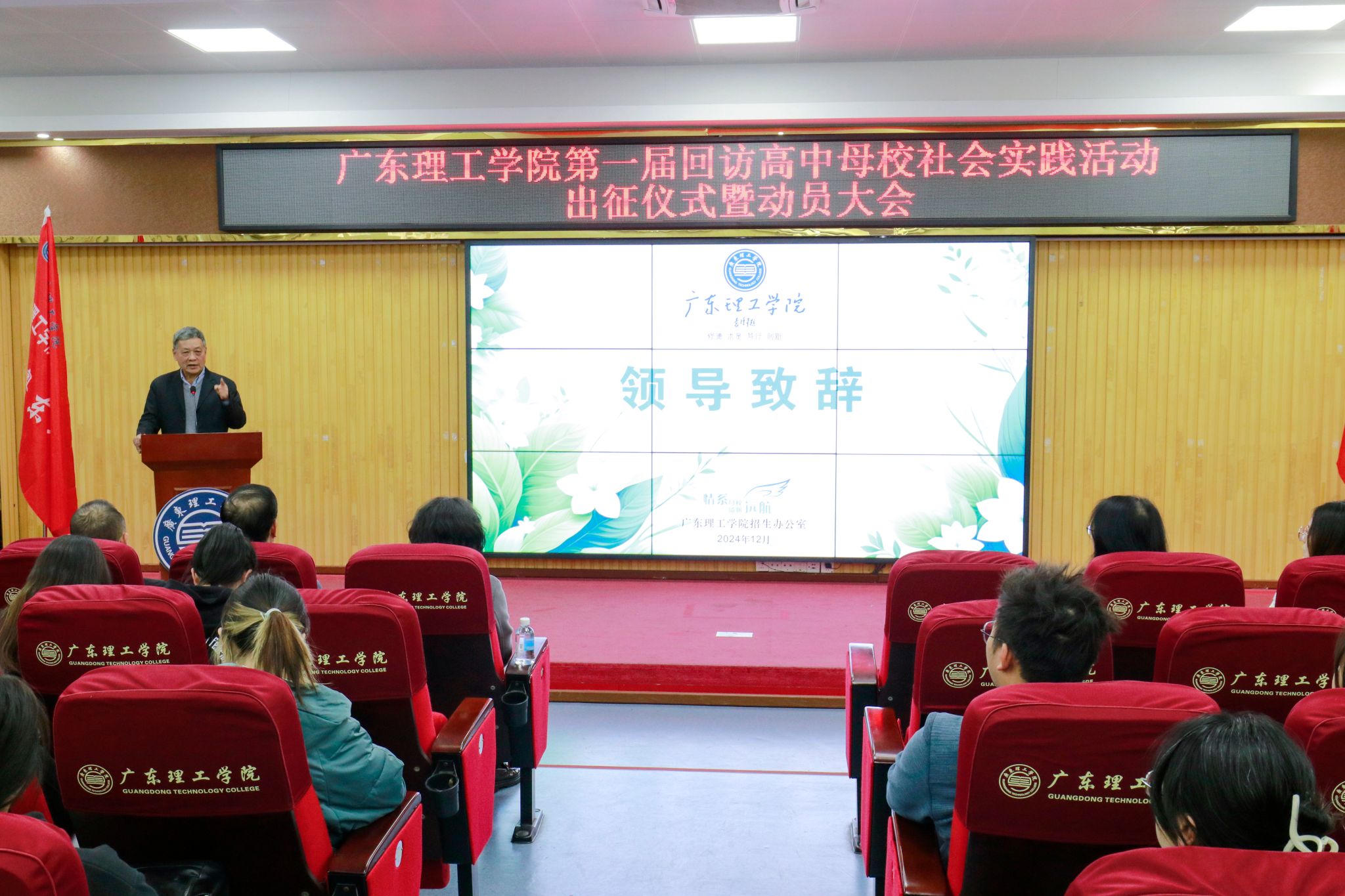 本网讯(招生办) 高中母校是大家成长的摇篮,是心中永远的港湾,回访高中母校,不仅是为了表达广理学子对母校的感恩之情,也是讲好广理故事、传播广理声音的重要载体。12月24日下午,bat365官网招生办公室在高要校区举办bat365在线中国官网登录入口第一届回访高中母校社会实践活动出征仪式暨培训大会。出席活动的领导嘉宾有:校长张湘伟、常务副校长柴维斯、副校长刘香萍、副校长谭锦兴、副校长唐建宁、党委组织部部长廖振宇、党委宣传部部长张冬、...