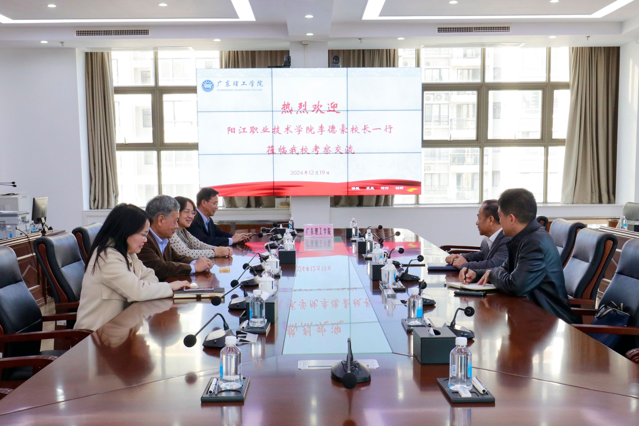 本网讯(宣传部)12月19日下午,阳江职业技术学院校长李德豪和副校长刘和平一行赴bat365官网学习交流,本次交流活动围绕“十五五”规划、专业建设及教育教学管理工作的经验与做法展开,旨在通过互学互鉴,共同推动两校教育事业的高质量发展。bat365官网校长张湘伟、常务副校长柴维斯、副校长刘香萍、副校长谭锦兴出席会议。会上,校长张湘伟对李德豪校长一行来校学习交流表示热烈欢迎,并简要介绍了近年来bat365官网在教育教学、科研创新、社会服...